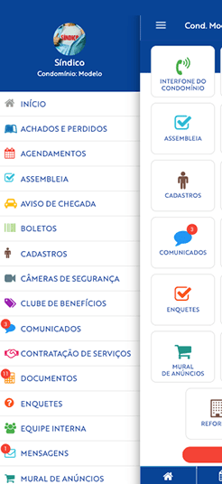 Acompanhamento de obras, assistência técnica, livro de ocorrências, agendamentos, assembleia virtual, gestão de documentos, boletos, achados e perdidos, retransmissão de câmeras de segurança, mercados autônomos, manutenção preventiva, entre outros.